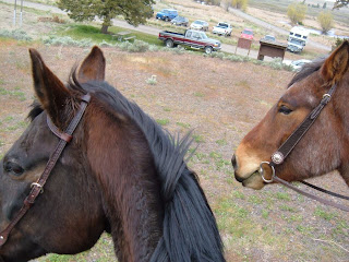 Ooh, gess whut?? I DID see Mom this week-end. She digged a path for to reech us in the Horse House. An then Hay Lady drived up in a big yello thing an she moved lots an lots of snow and now i can go play in the areena an eet som grain foods. Hooray!